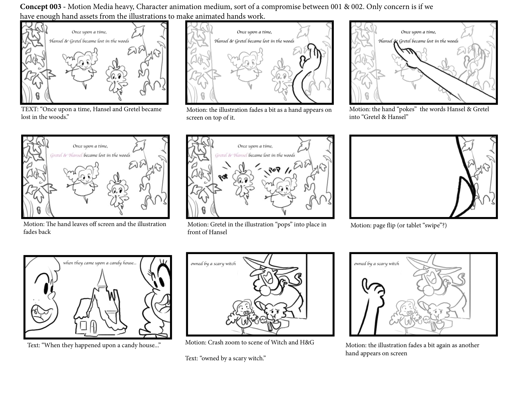 For each short, I presented Producer Michael Jantze with 2-3 concept/storyboard pitches based on given brief of our goals for the trailer of each books.